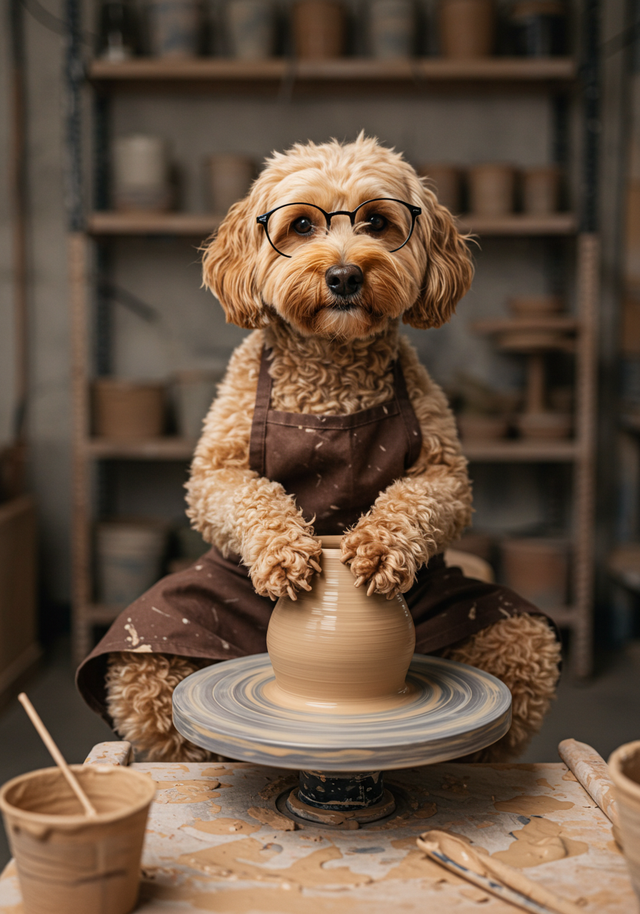 Cockapoo Pottery Pal Framed Canvas