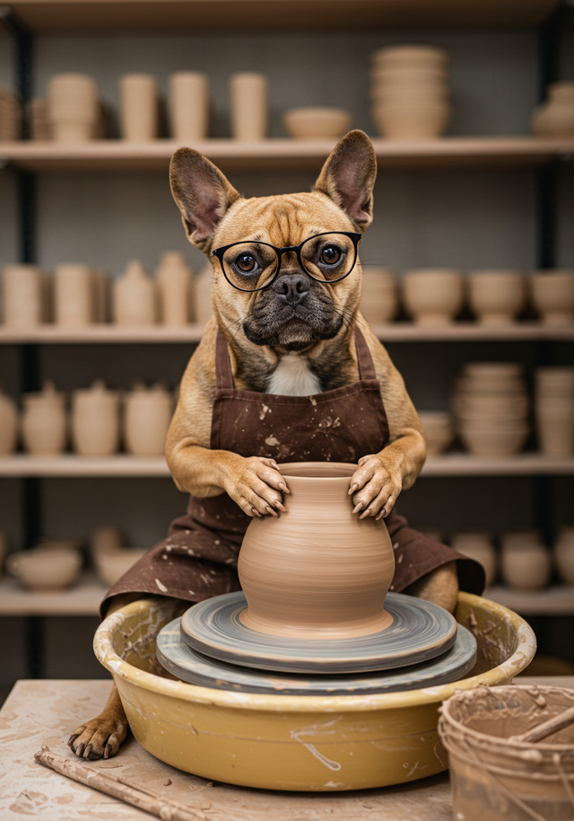 Frenchie Pottery Pal Framed Canvas