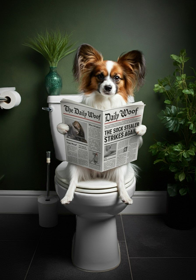 Papillion on the Toilet Framed Canvas